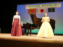 2月15日(土)に富山県教育文化会館で「第61回親切・善行感謝感謝の集い」を開催しました。当日は、それまでの雪が嘘のように快晴の素晴らしい天気になり、236人の顕彰者の善行をたたえる素晴らしい日になりました。 第1部では大阪音楽大学同窓会の皆さんのプレジールの演奏会が開催されました。本格的な声楽が聴けるとてもいい機会になりました。お二人の澄んだ歌声が会場いっぱいに広がりました。鬼のパンツの歌に合わせて会場が一体となって楽しめました。 第2部では理事長挨拶、祝辞の後、顕彰者代表14名に理事長から一人一人の顕彰状を贈呈しました。今年は、能登震災への支援や子ども育成、地域の環境美化など様々な取組の皆様を顕彰できたことうれしく思います。これからも、小さな親切を続けていただき、もっと広がることを期待しています。 本当に心温まる日になりました。 |