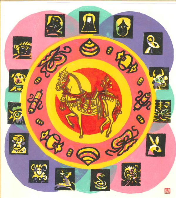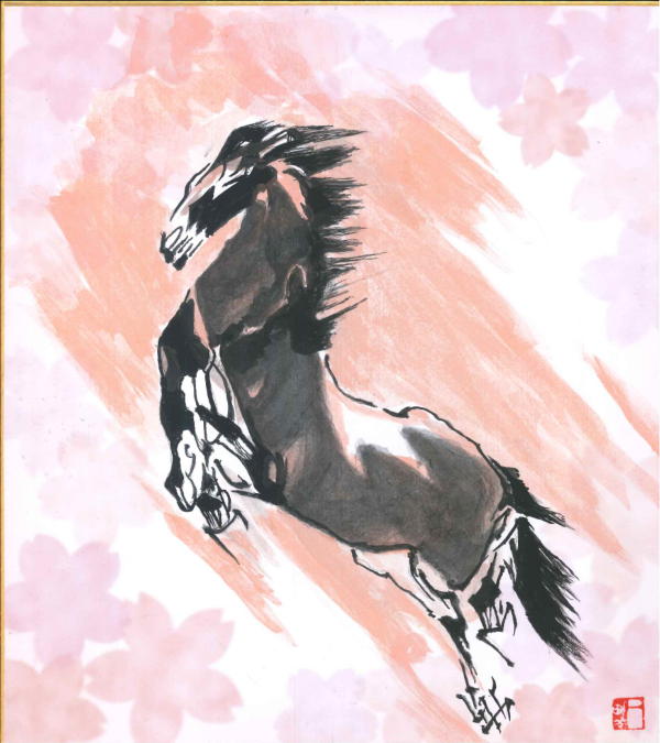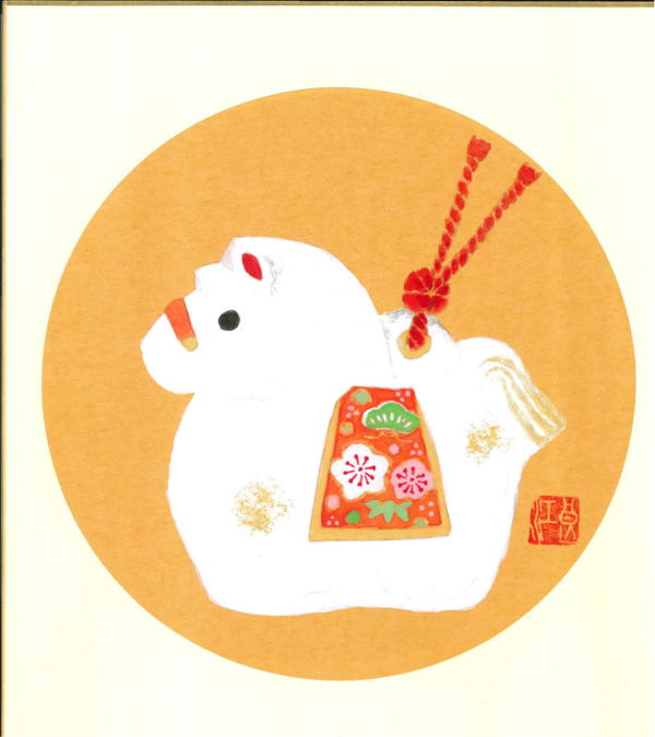 | 「干支 馬」 | 「翡翠(かわせみ)」 | 「雨あがり」 | 「ぼたん」 | |||