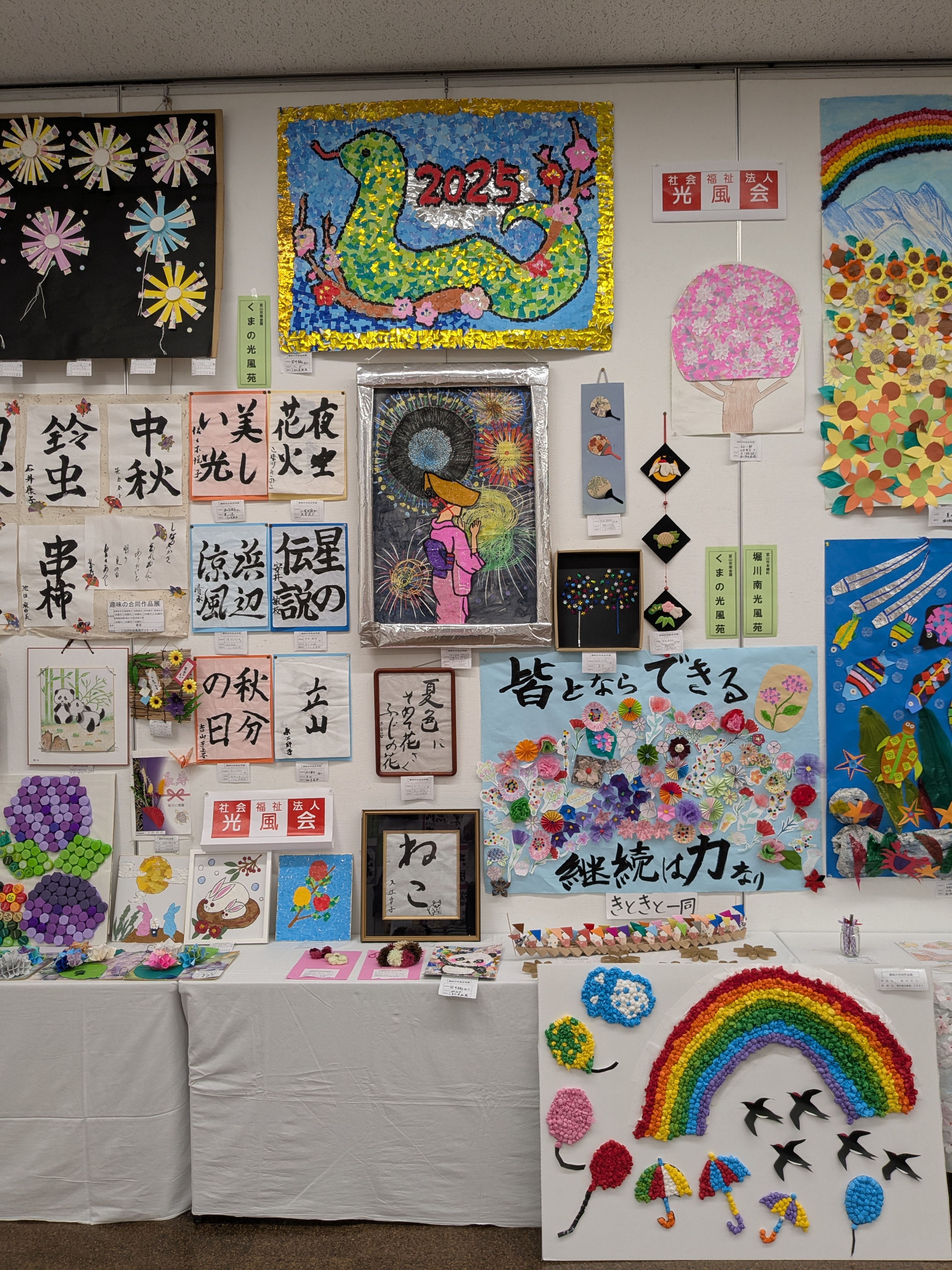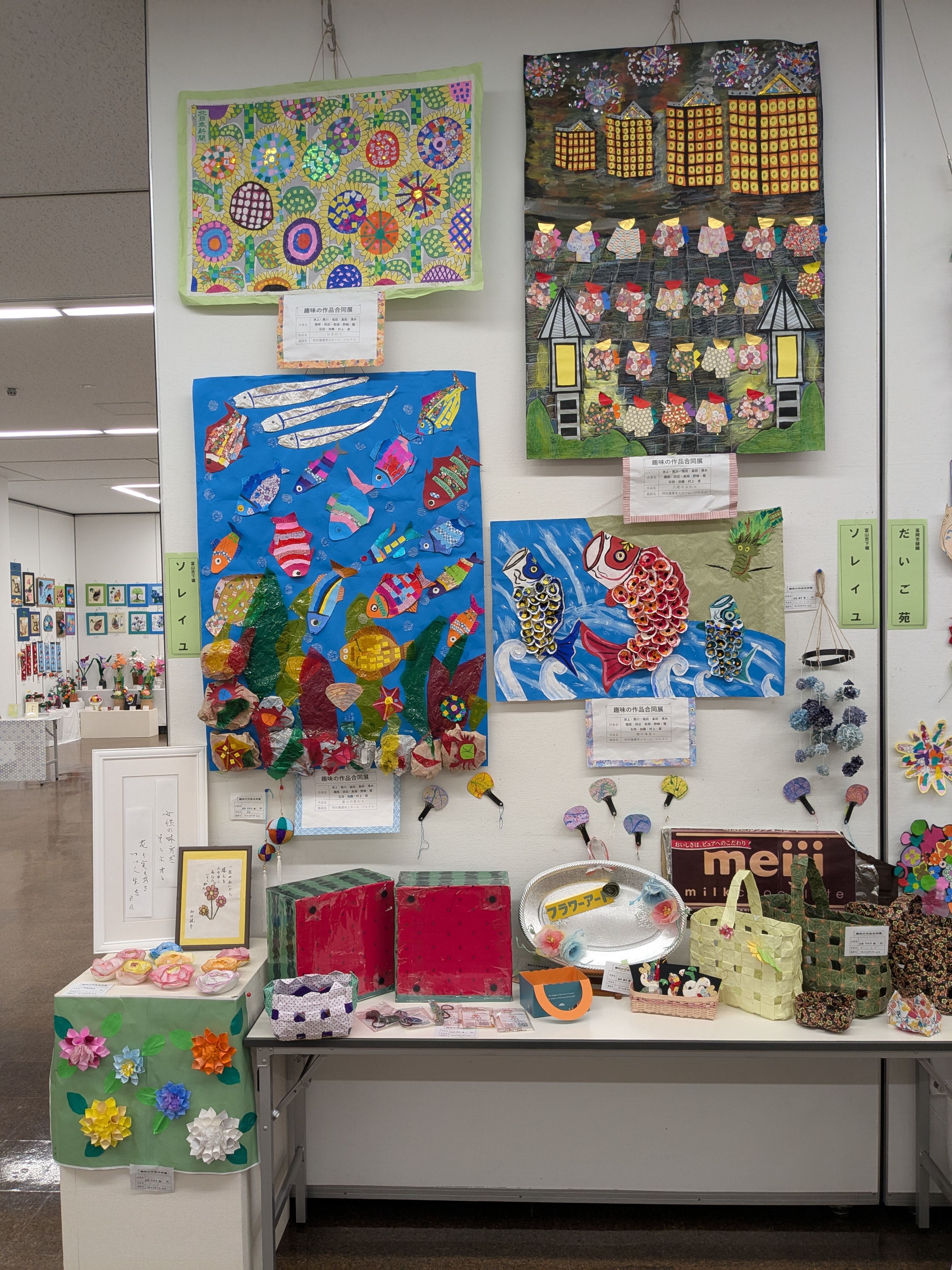 施設利用者の素晴らしい作品が会場一杯に掲示されました。